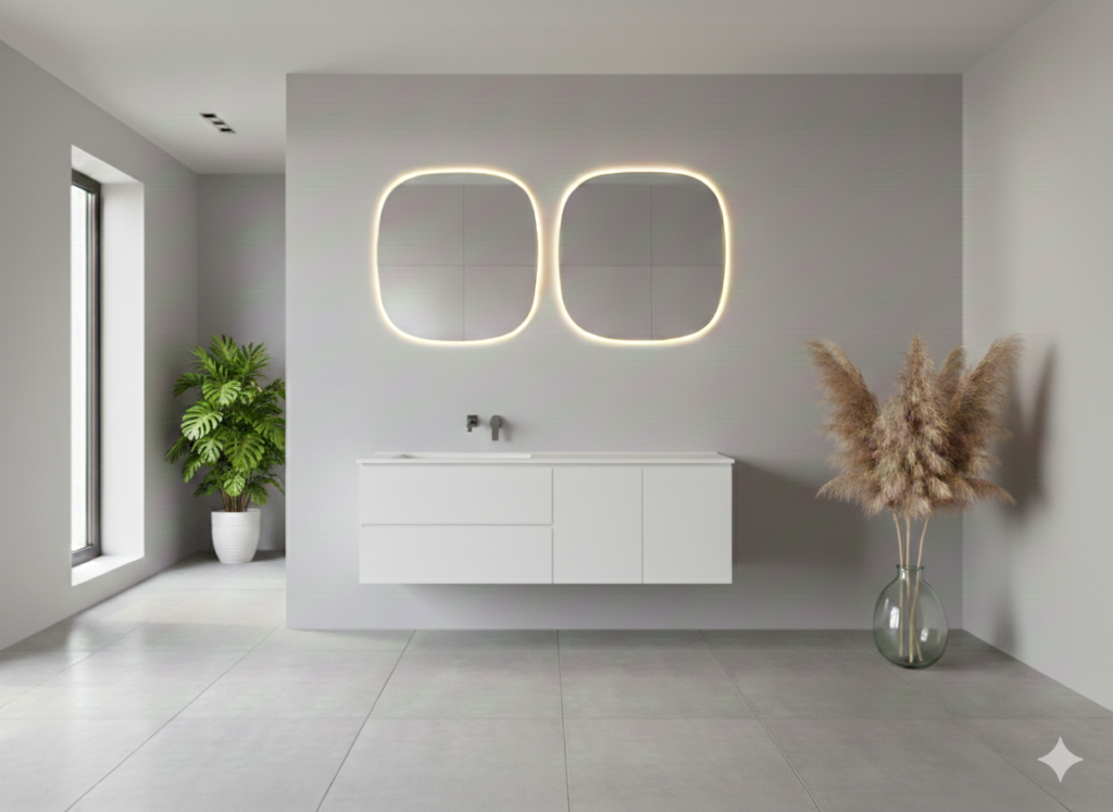 Im Badezimmer sind runde Spiegel längst Standard in hochwertigen Interieurs. Wir setzen sie über Waschbecken ein, um klare Linien zu durchbrechen und eine spa-ähnliche Atmosphäre zu schaffen. Modelle mit integrierter LED-Beleuchtung sorgen für optimale Lichtverhältnisse und unterstützen eine präzise Nutzung im Alltag.