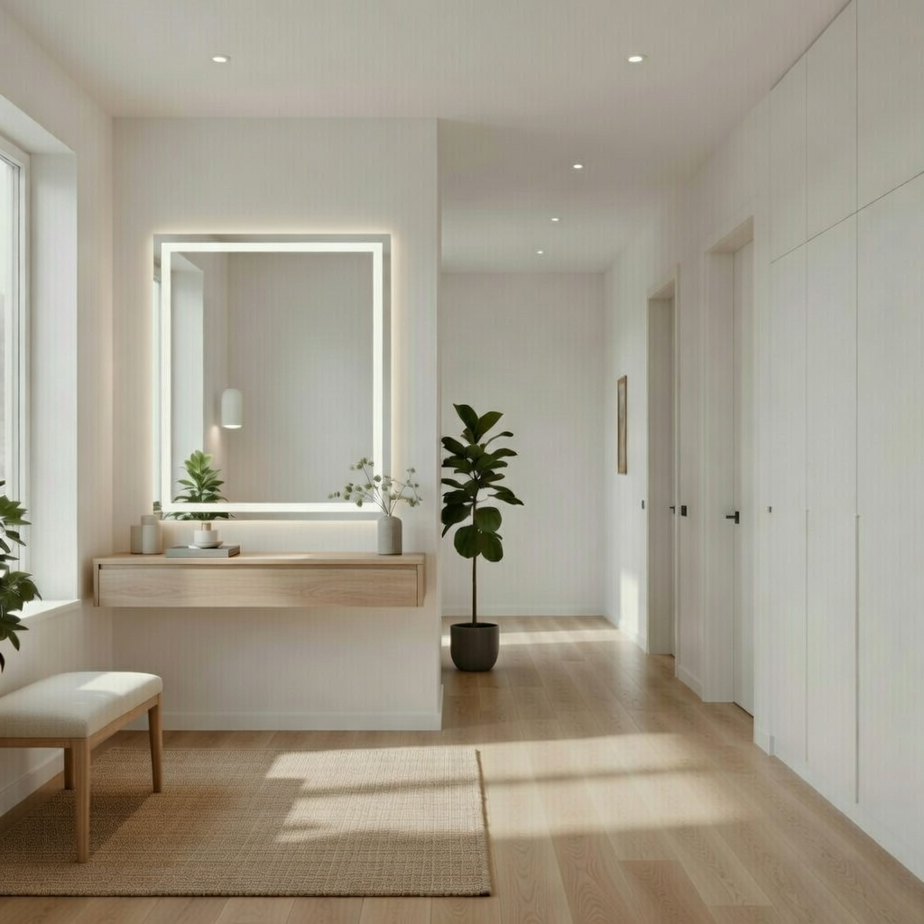 Der Eingangsbereich ist die Visitenkarte eines Hauses. Wir setzen hier auf runde Spiegel, um Licht zu reflektieren und den Raum offener wirken zu lassen. Besonders schmale Flure profitieren von dieser Lösung. In Kombination mit Konsolentischen und gezielter Beleuchtung entsteht ein einladender erster Eindruck .